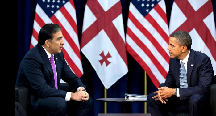 The current President is Mikheil Saakashvili, seen here meeting U.S. President Obama.