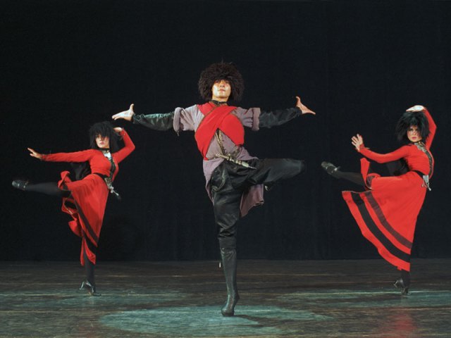 The Georgian National Ballet has given more than 10,000 concerts in about 100 countries on all five continents. It has 80 male and 30 female dancers and 15 musicians.