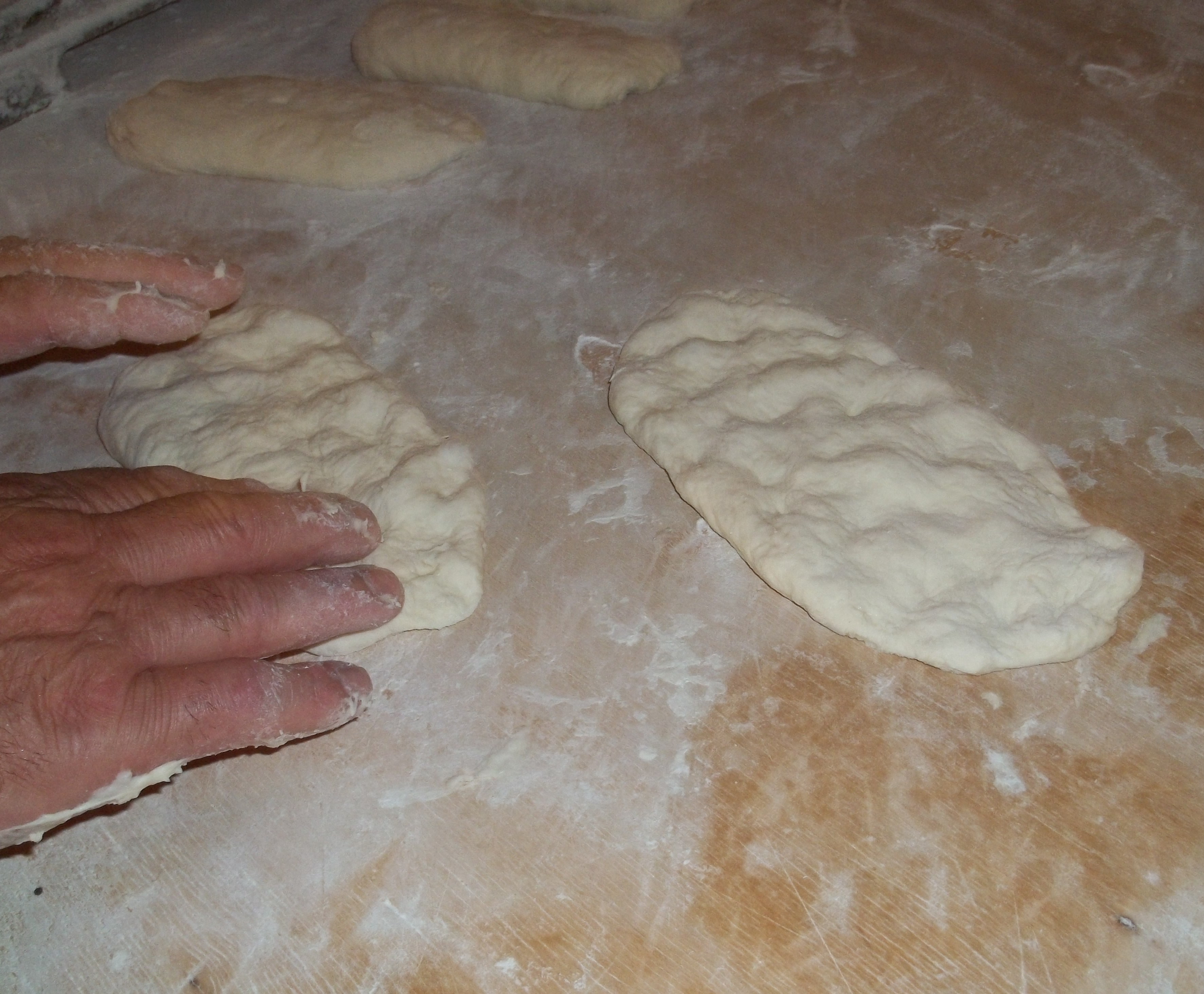 Each Lobiani is stretched onto a special linen covered pad (called Lapati in Georgian) and gently flattened.