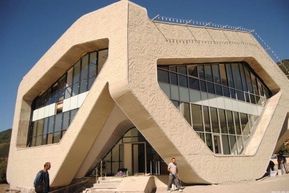 Close up of the new Justice Building in Svaneti