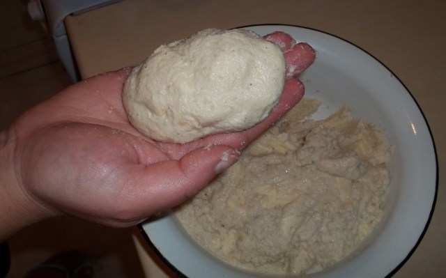When the mixture is ready mold each Chvishtari by hand as shown in the photo below. Make sure you have at least 5-6 pieces of cheese in each Chvishtari.