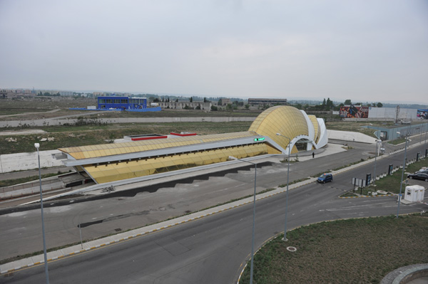Located just 70 meters from the airport terminal, this stunning building, clad with golden glass, was designed by the Georgian company “Delta-project 2000”.