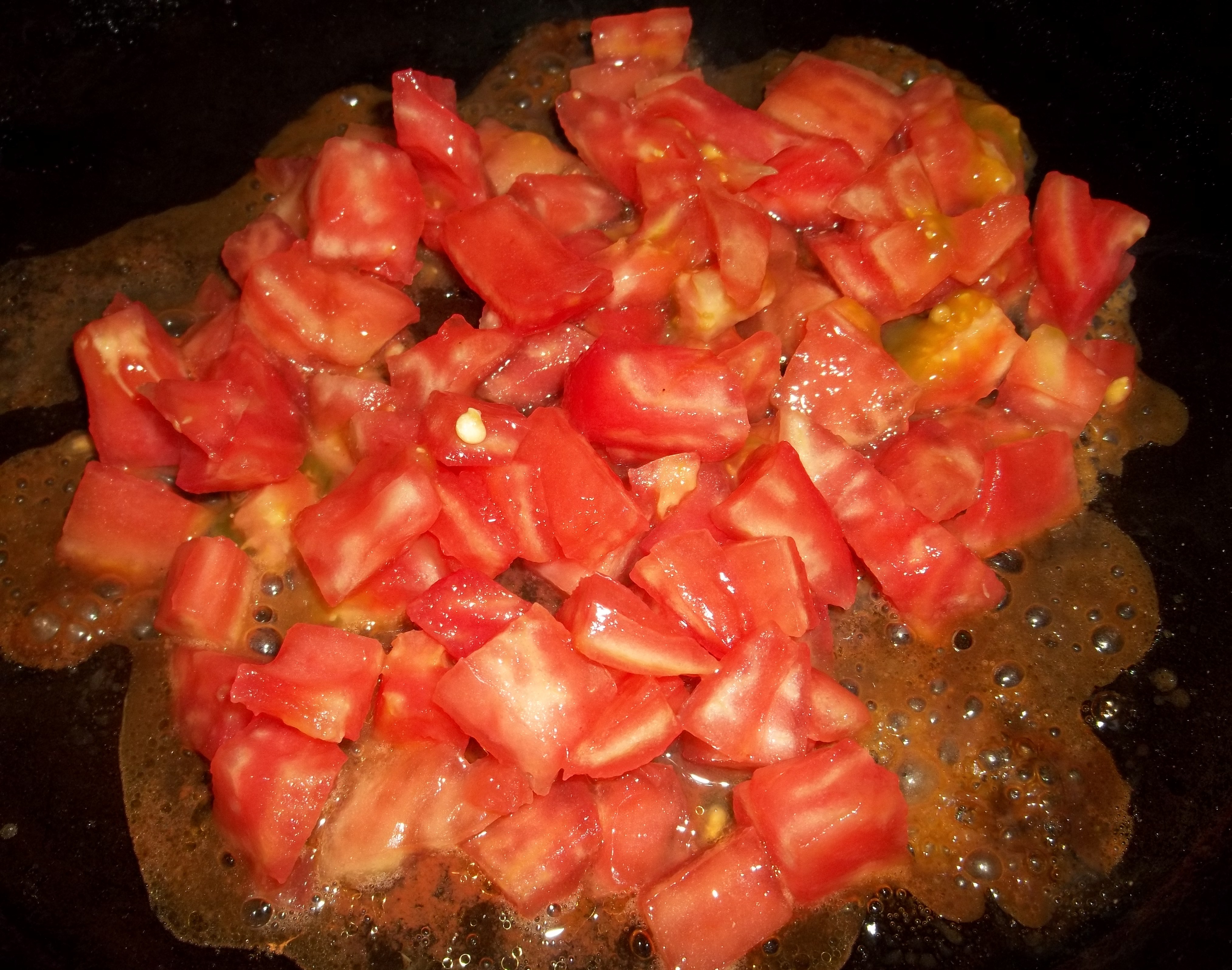 Add a little oil to a pan and when hot add the chopped tomatoes and stir continuously for 2-3 minutes.