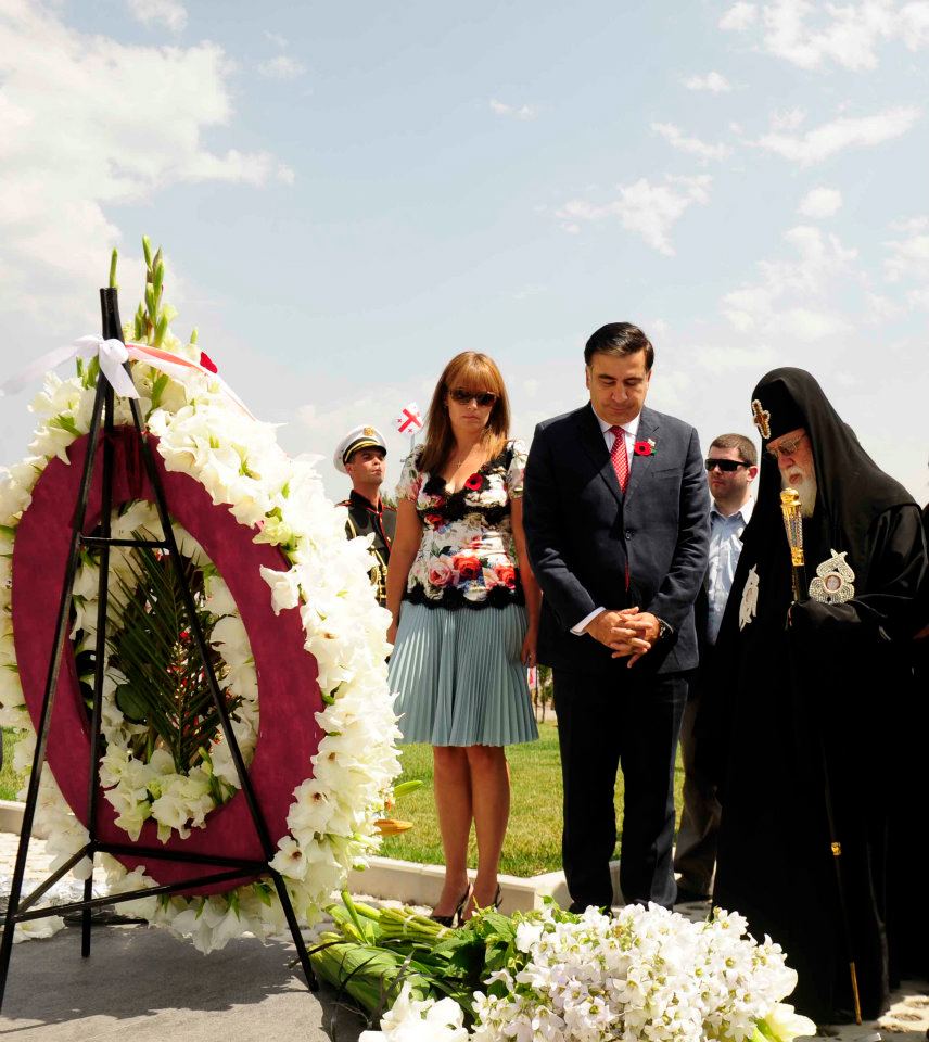 The Georgian president Mikheil Saakashvili together with the Patriarch of Georgia Ilia II were in Mukhatgverdi cemetery on the outskirts of Tbilisi today to pay tribute to Georgian military personnel who died in the 2008 conflict with Russia.