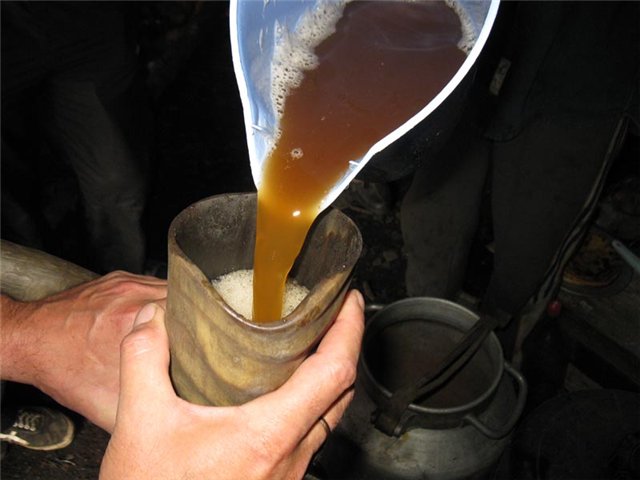Sacred beer being poured into a khantsi (traditional Georgian drinking horn)