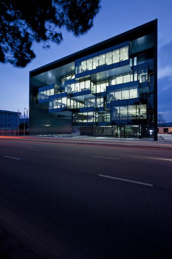Situated on the outskirts of the city center and close to the Tbilisi Court building the Tbilisi Prosecutor’s Office is the first project from a small team called ‘Architects of Invention’. This stunning structure consists of a stark black frame with overhanging volumes that are suspended in the air.
