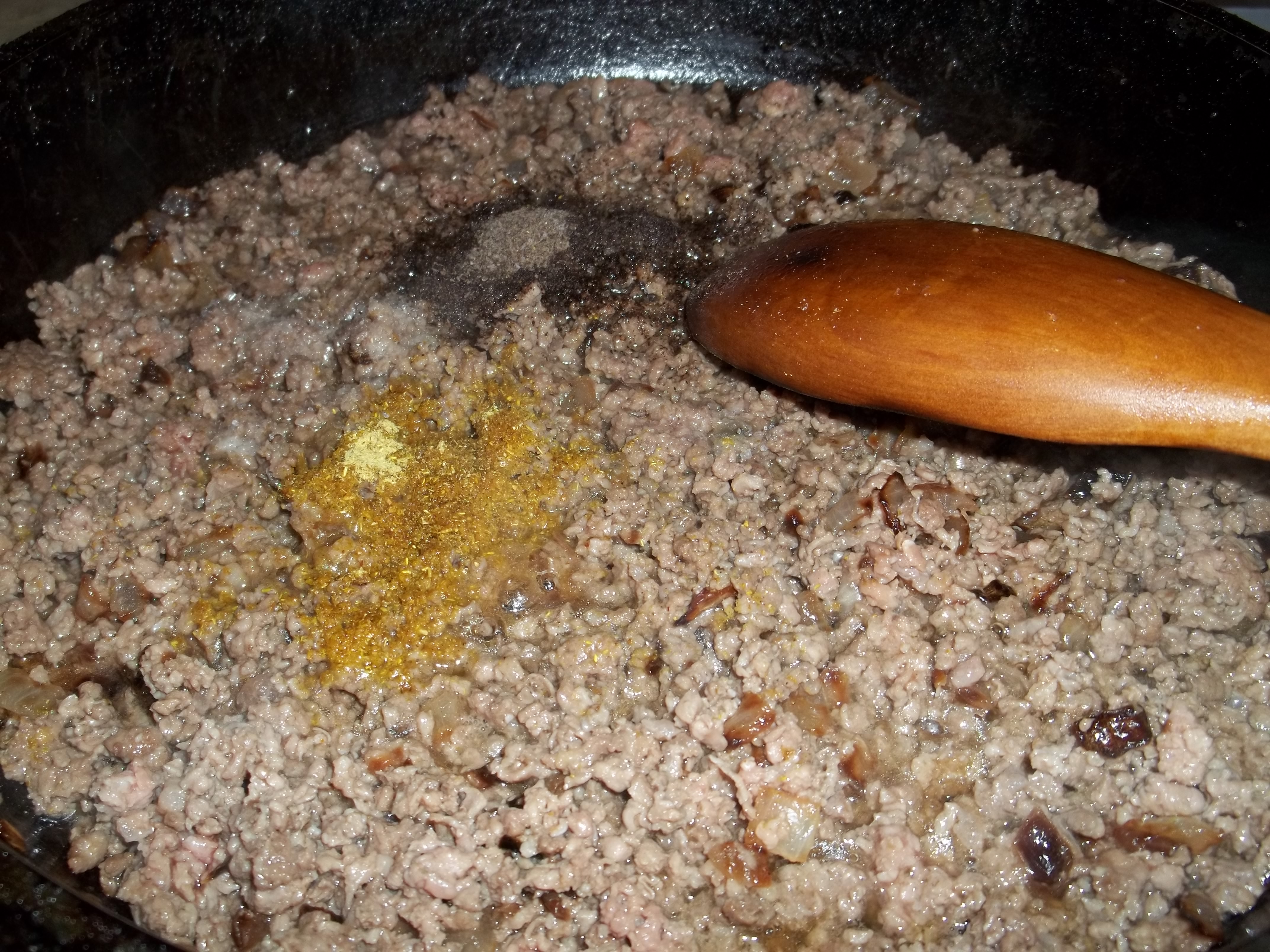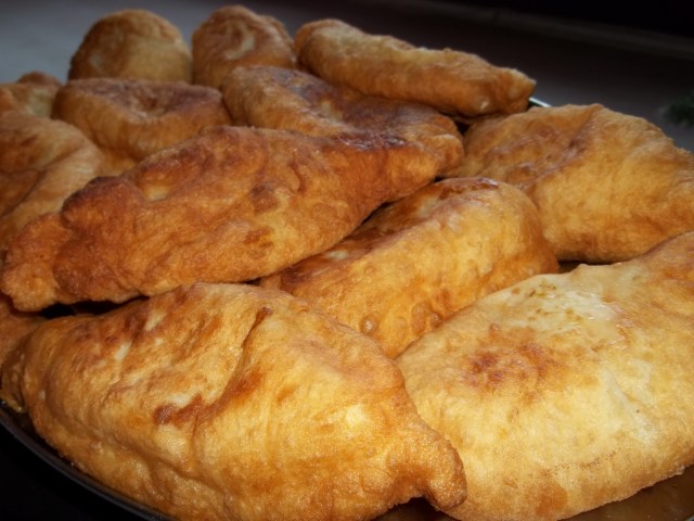 Ingredients (around 10 servings)Dough – 1 kilo of flour (800 grams for the dough and 200 grams for dusting and kneading) , 1 egg, 400 ml of warm water, 25 grams of dry active yeast and 1 tsp of salt; Filling – 500 grams of ground beef and pork mix, 100 grams of rice, salt, 1 tsp of  black pepper, 1 tsp dried Blue Fenugreek, 2 onions, 1 egg and finely chopped parsley (optional – we did not use it). Cooking – 500 ml of oil.