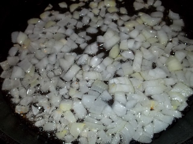 Preparation (filling): Finely chop the onions and fry until golden brown.