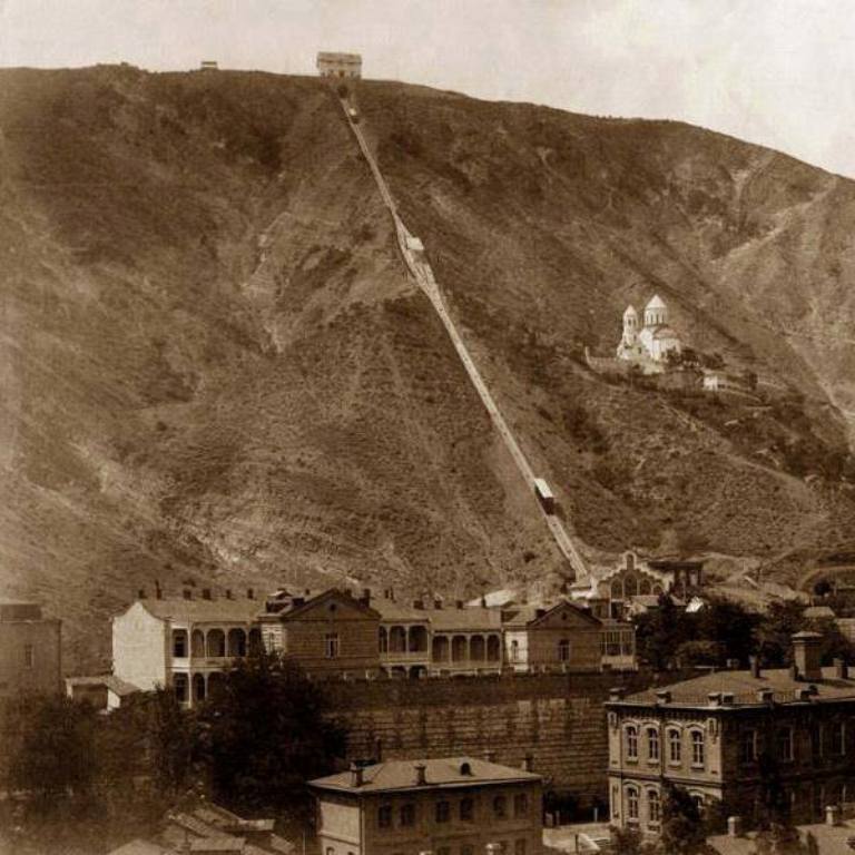 The Tiflis Funicular railway was constructed to develop the uninhabited Mtatsminda plateau that overlooks the city and was opened on 27 March 1905. The railway carriage accommodated up to 50 people and the journey time was 6 minutes.