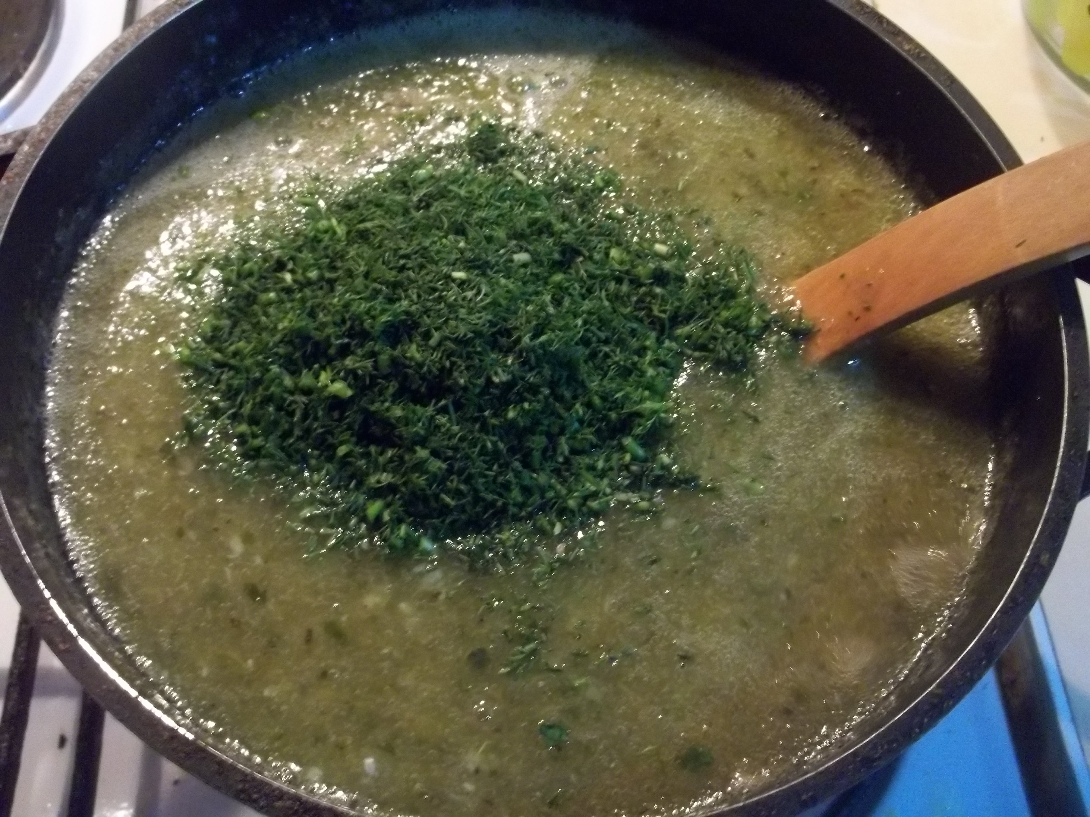 Adding Herb to Tkemali Recipe