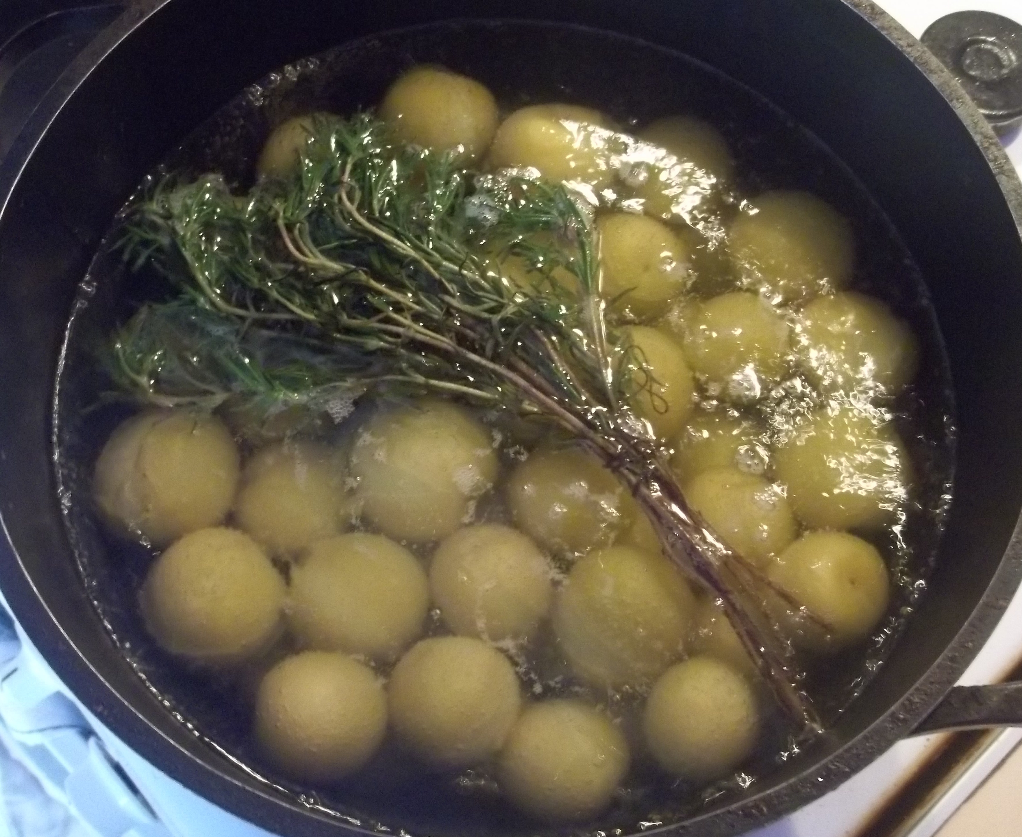 Heat on high temperature until the plums are boiled and then reduce temperature to simmer the plums. Add the Summer Savory to the simmering plums.