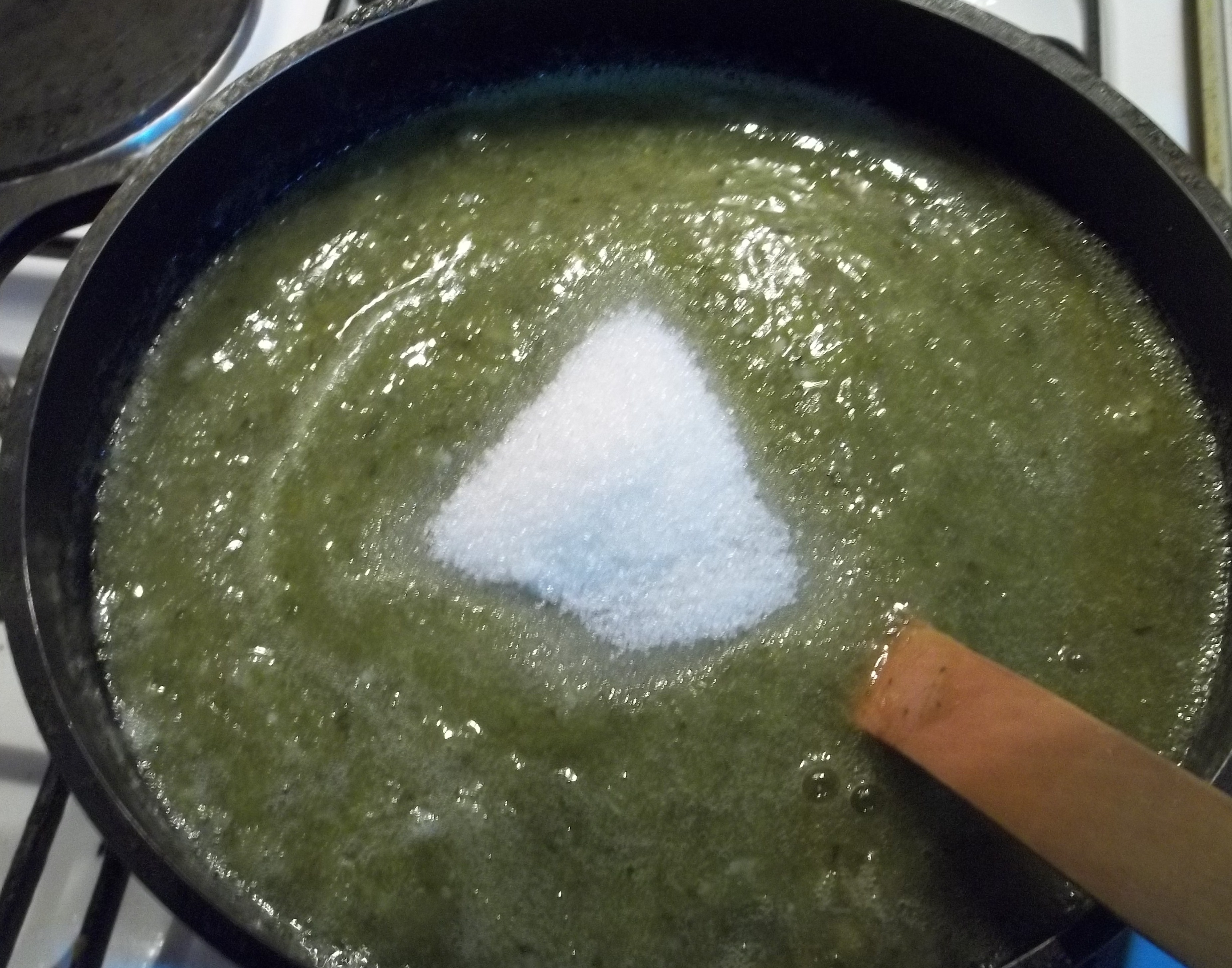 Adding Sugar to Tkemali Sauce Mix