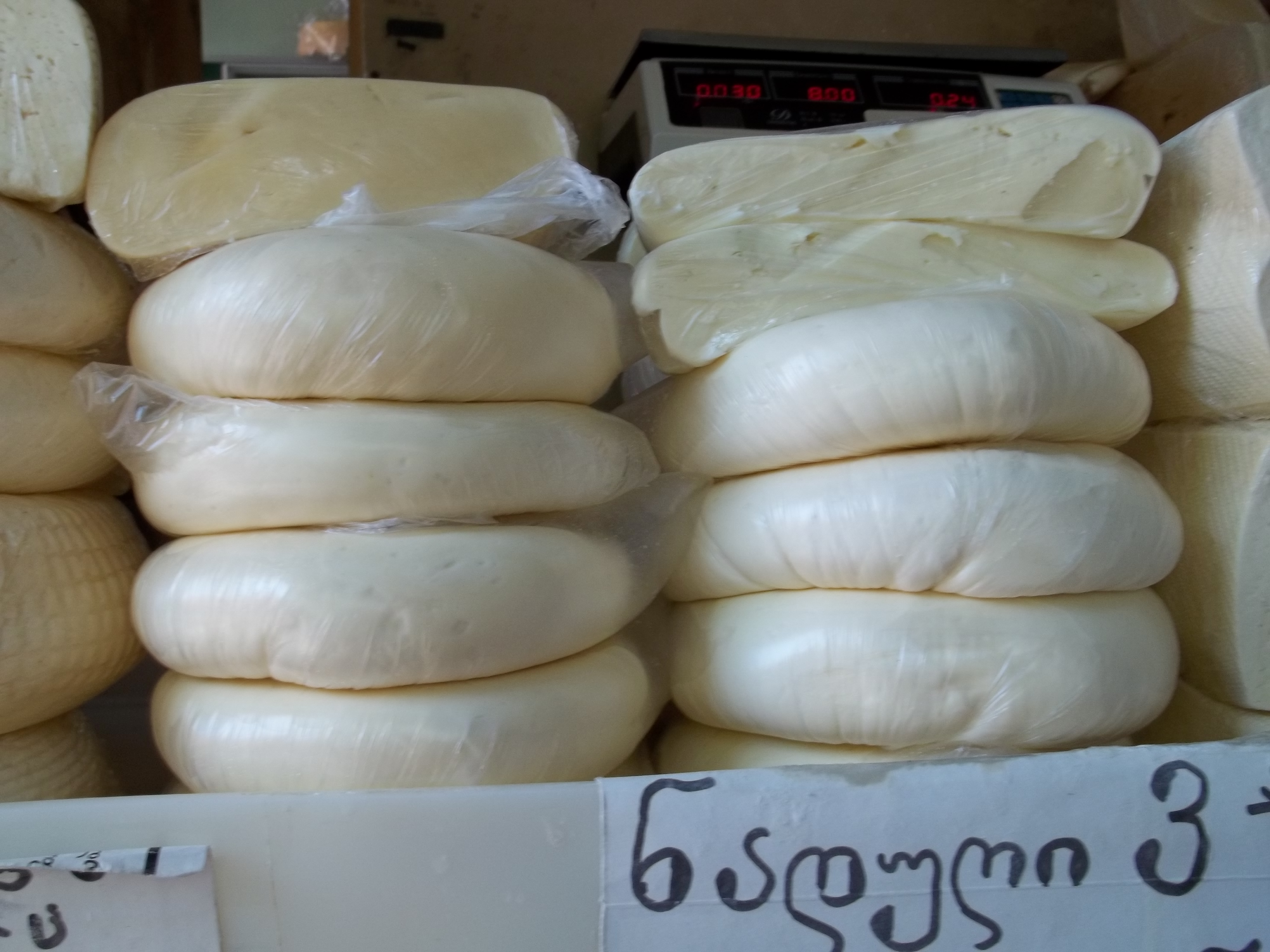 Sulguni (Georgian: სულგუნი) is a cheese from the Samegrelo region of Georgia. It has a sour, moderately salty flavor and an elastic consistency. Sulguni is made using only natural ingredients: normalized cow milk clotted by rennet with pure cultures of lactic bacteria. It is a “quick cheese” maturing in just one or two days.