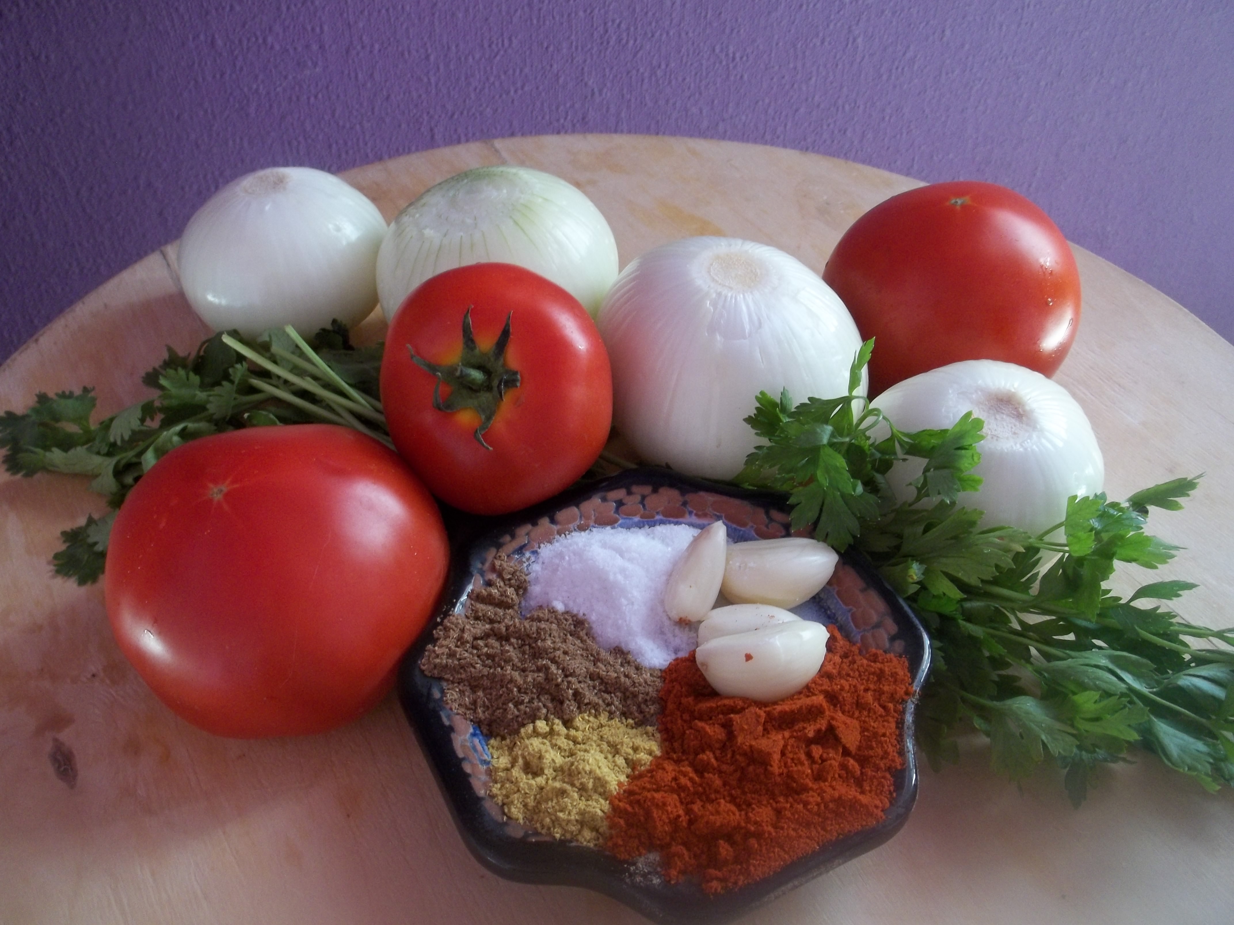 Other ingredients: 4 Bay leaves, 3 cloves of garlic, 4 white onions, 3 tomatoes, 20 grams of fresh green coriander, 20 grams of fresh parsley, 1 tsp of dried coriander, half tsp of dried Blue Fenugreek, 1 and half tsp red pepper and salt (quantity dependent on personal preference).
