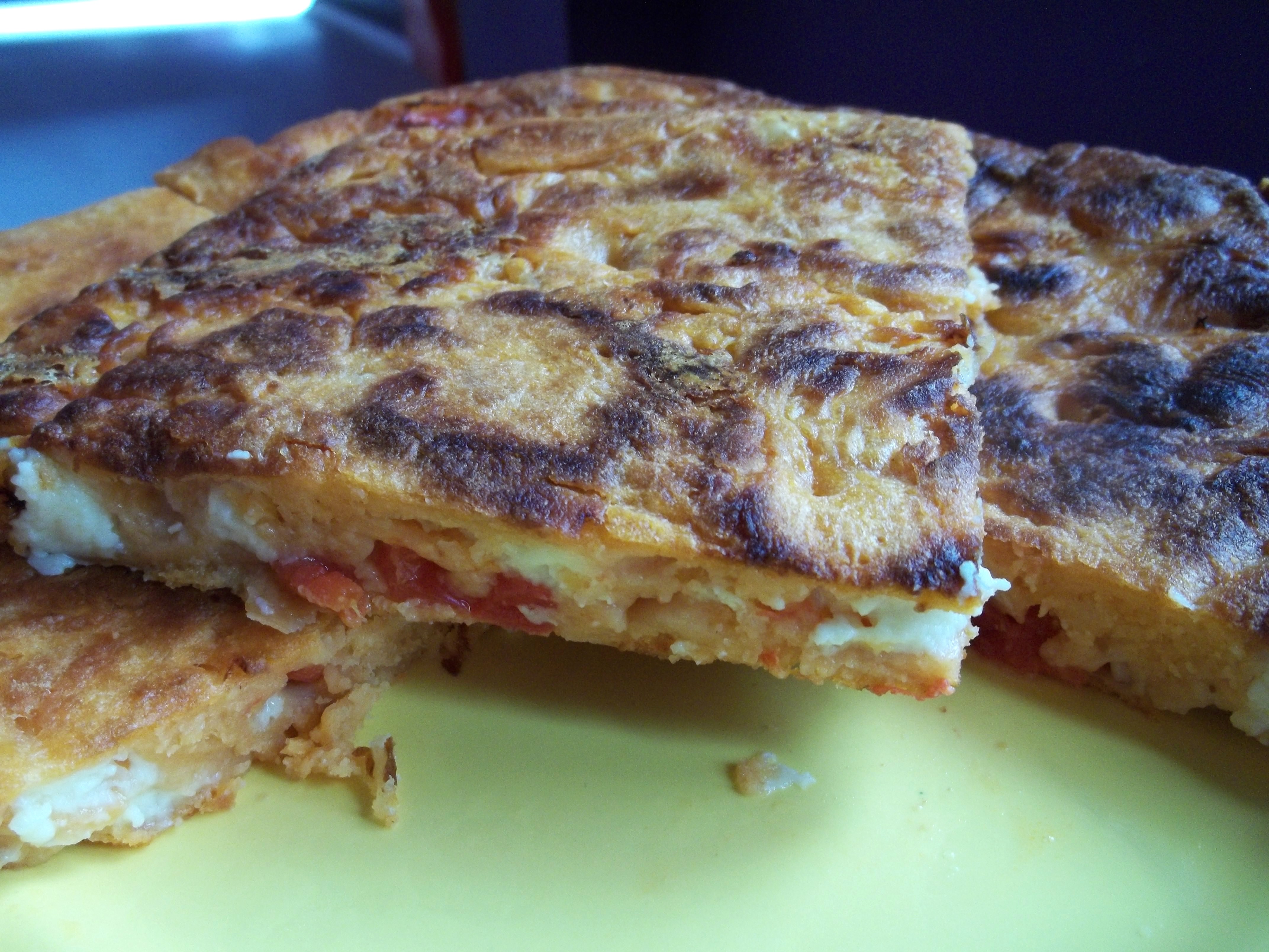 Ingredients: 300 grams of flour, 3 eggs, 300 grams of imeretian cheese (mozzarella cheese can be used), salt (quantity dependent on personal preference), 1 tsp of sugar, half tsp of baking soda, 200 ml water, and oil.