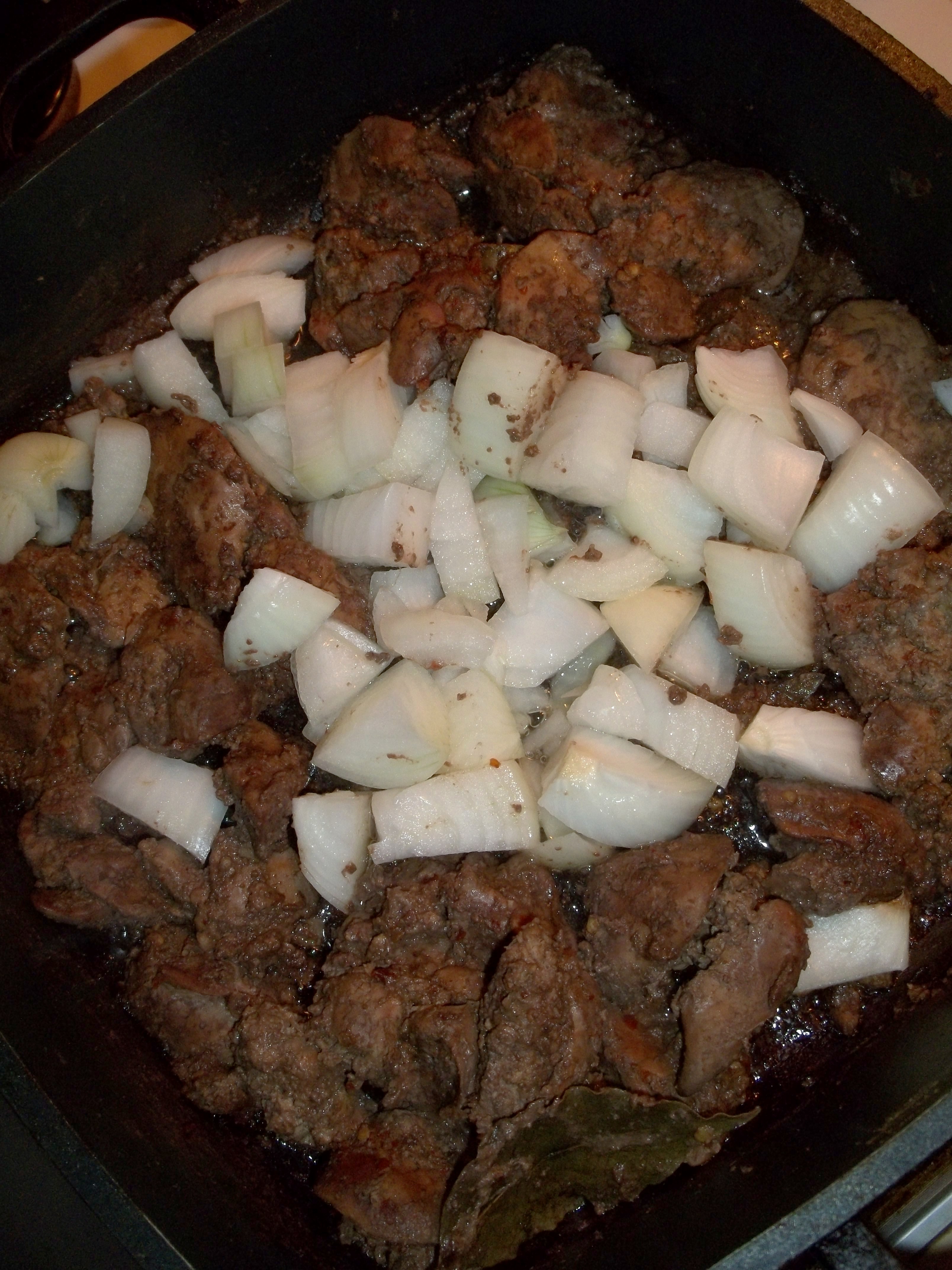 – add liver to the onions and mixing gently sautee for 10 minutes. Remember not to cover the frying pan with a lid for liver to be tender.