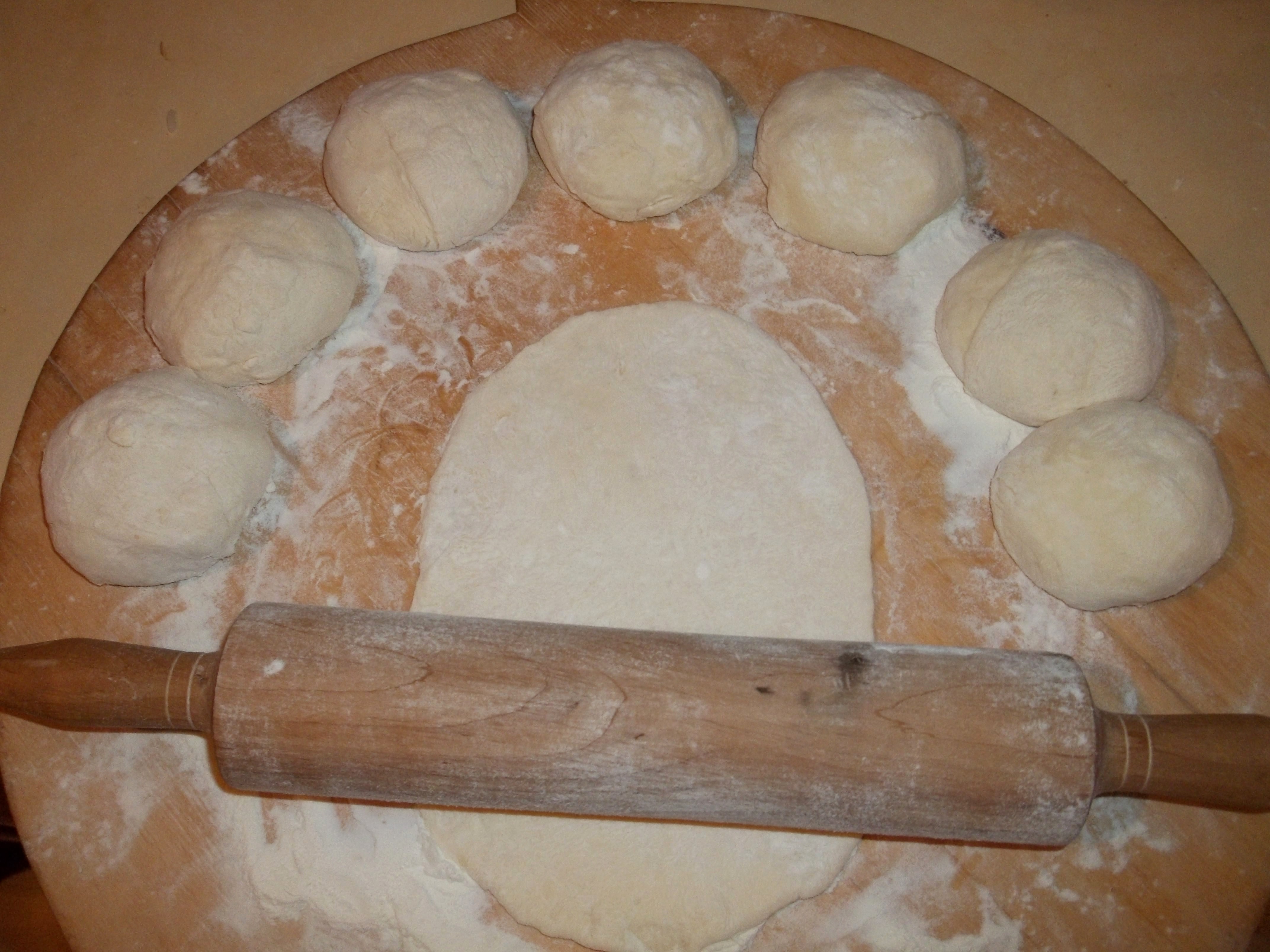 Ingredients for the dough: 700 grams of flour, 180 ml of water or milk, 1 egg, 1 tbs of yeast, 1 tsp of sugar, 1 tsp of salt.