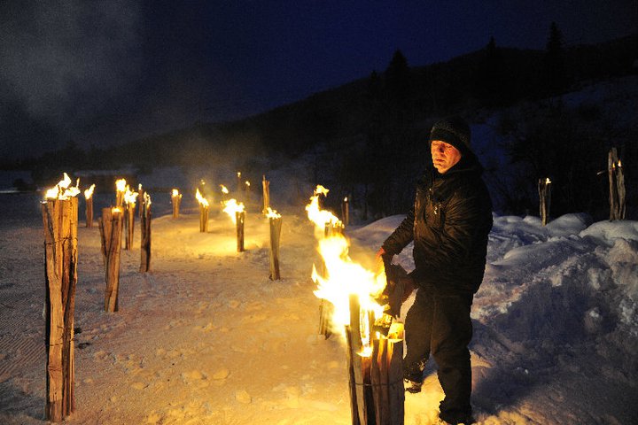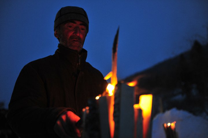 The “lampari” are placed in the ground and lit to mark the beginning of the Lamproba celebration.