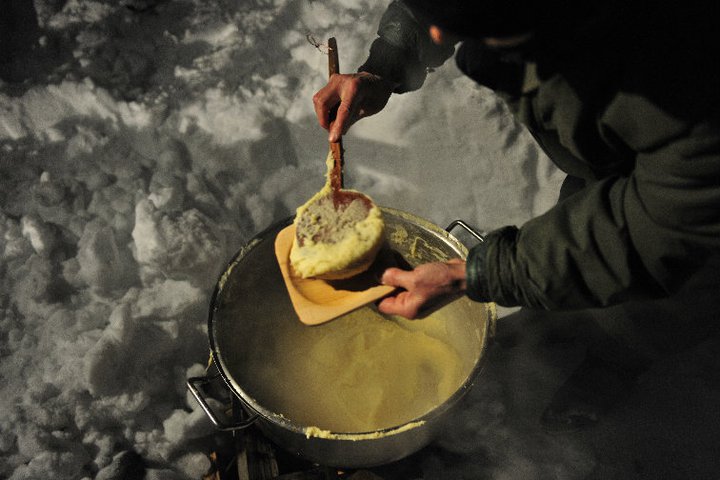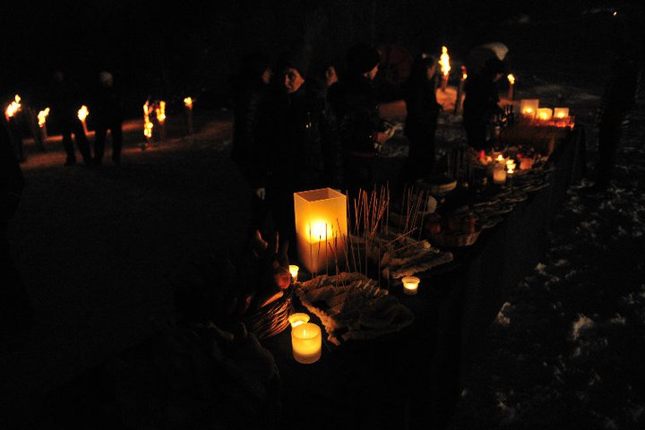 Birch and oak branches are collected, dried, cut into staves and bound together to make wooden lamps called “lampari”. There is one lamp for each member of the family.