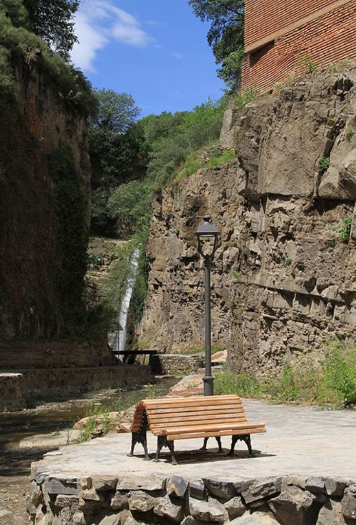The Tsavkisistskali River gorge is commonly referred to as “Leghvtakhevi” (Georgian: ლეღვთახევი) – fig gorge. Part of the gorge is located in the National Botanical Garden of Georgia and part is located in the Bath District (Abanotubani) of Tbilisi’s Old Town. In 2012, paths and bridges were constructed, trees planted and houses renovated in the Bath District section of the gorge and it is now a popular place to stroll and relax.