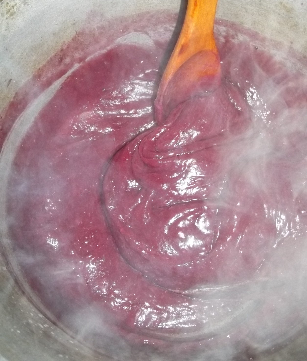 Preparation (badagi): Wash and remove stalks from the grapes. Mash the washed grapes in a colander positioned over a large bowl.