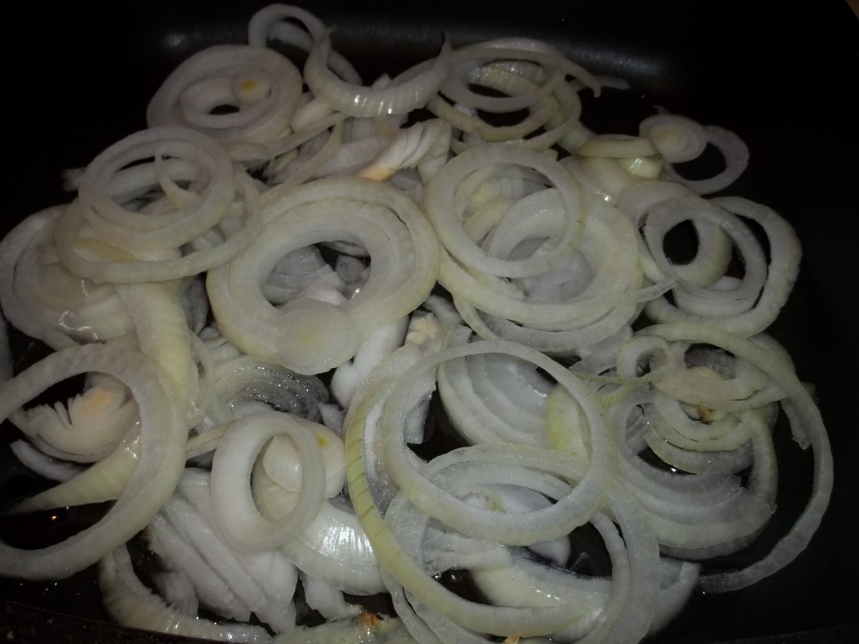 Slice the onions and add to a pan of oil. Fry on a medium heat until they brown.