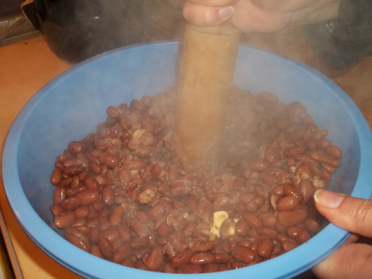 Use the back of a wooden spoon to mash the beans, butter and salt together.