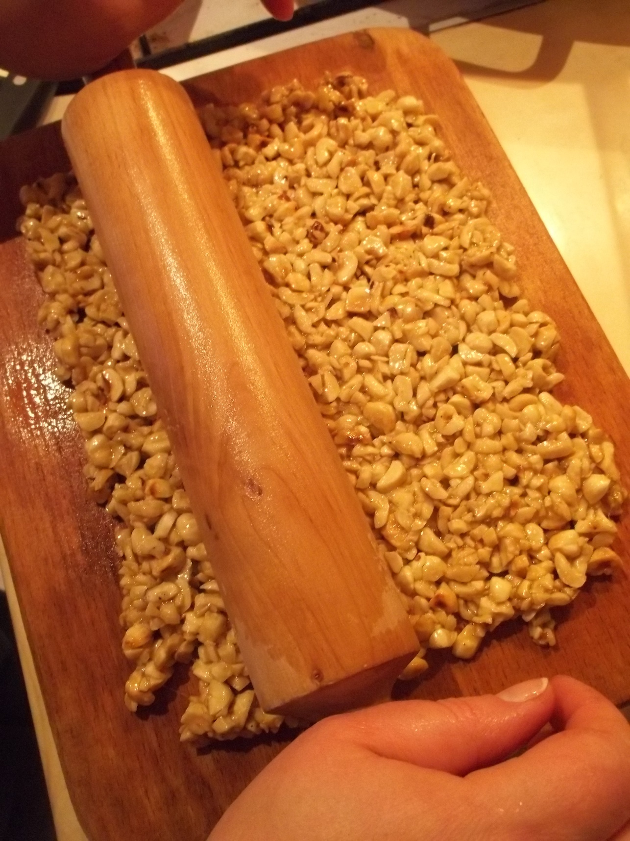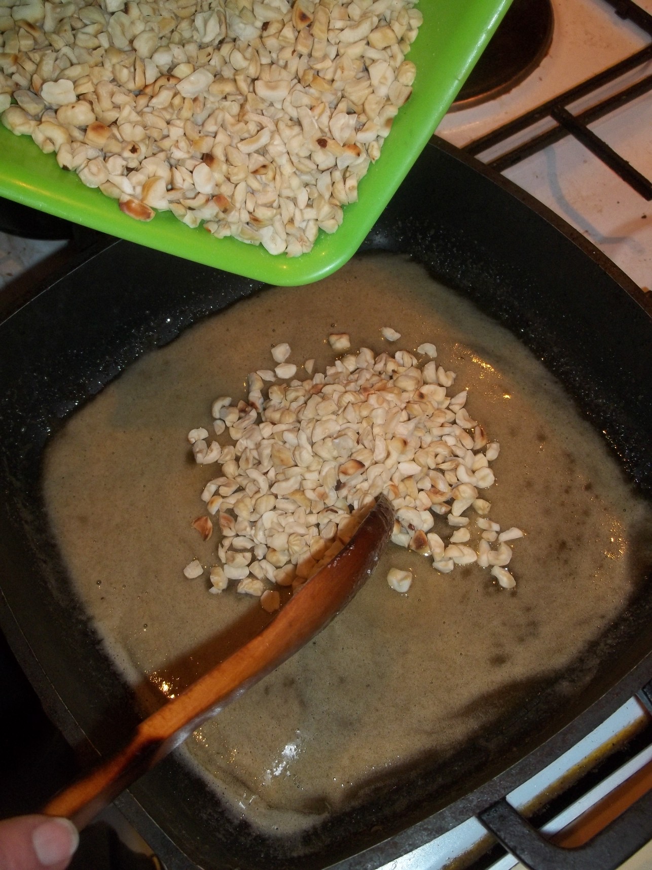 Ingredients: Half kilo of hazelnuts, 4 heaped tbs of honey and 1 tbs of sugar.