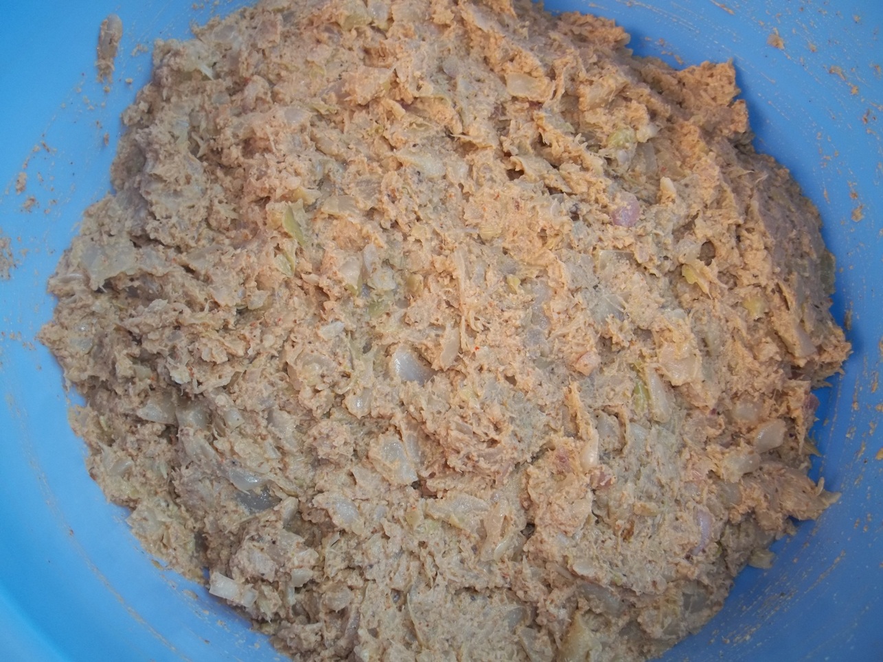 Mix by hand until the pkhali is smooth.
