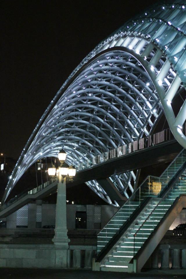 The structure of the bridge was built in Italy and transported to Tbilisi in 200 trucks while the lighting was installed on site.