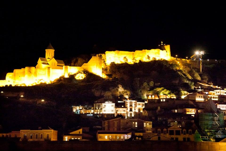 Narikala (Georgian: ნარიყალა) is an ancient fortress on a steep hill overlooking the Mtkvari River in Tbilisi, the capital of Georgia. At night, the walls and towers of this imposing castle are illuminated, creating a dramatic backdrop to the balconied houses of the Old Town.
