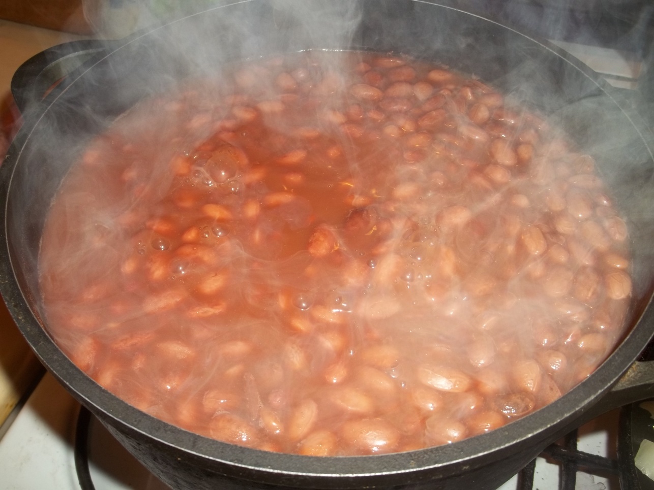 Ingredients: 700 grams of lobio (kidney beans), 200 grams of green onions, 100 grams of butter, 4 cloves of garlic, 4 bay leaves, 3 tbs of oil, 1 heaped tbs of coarse hot pepper, 1 heaped tbs of tomato puree, salt (amount dependent upon personal preference) and lobio spices (see below for ingredients).