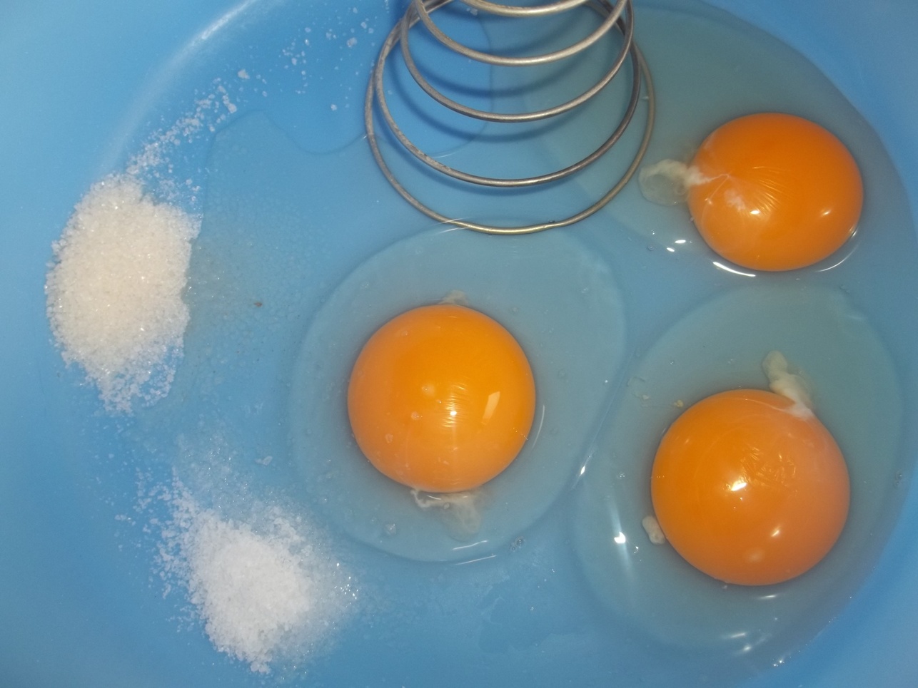 Preparation: Add the eggs to a mixing bowl and beat together with 1 level tsp of sugar and 1 level tsp of salt. Use a whisk to beat the ingredients.