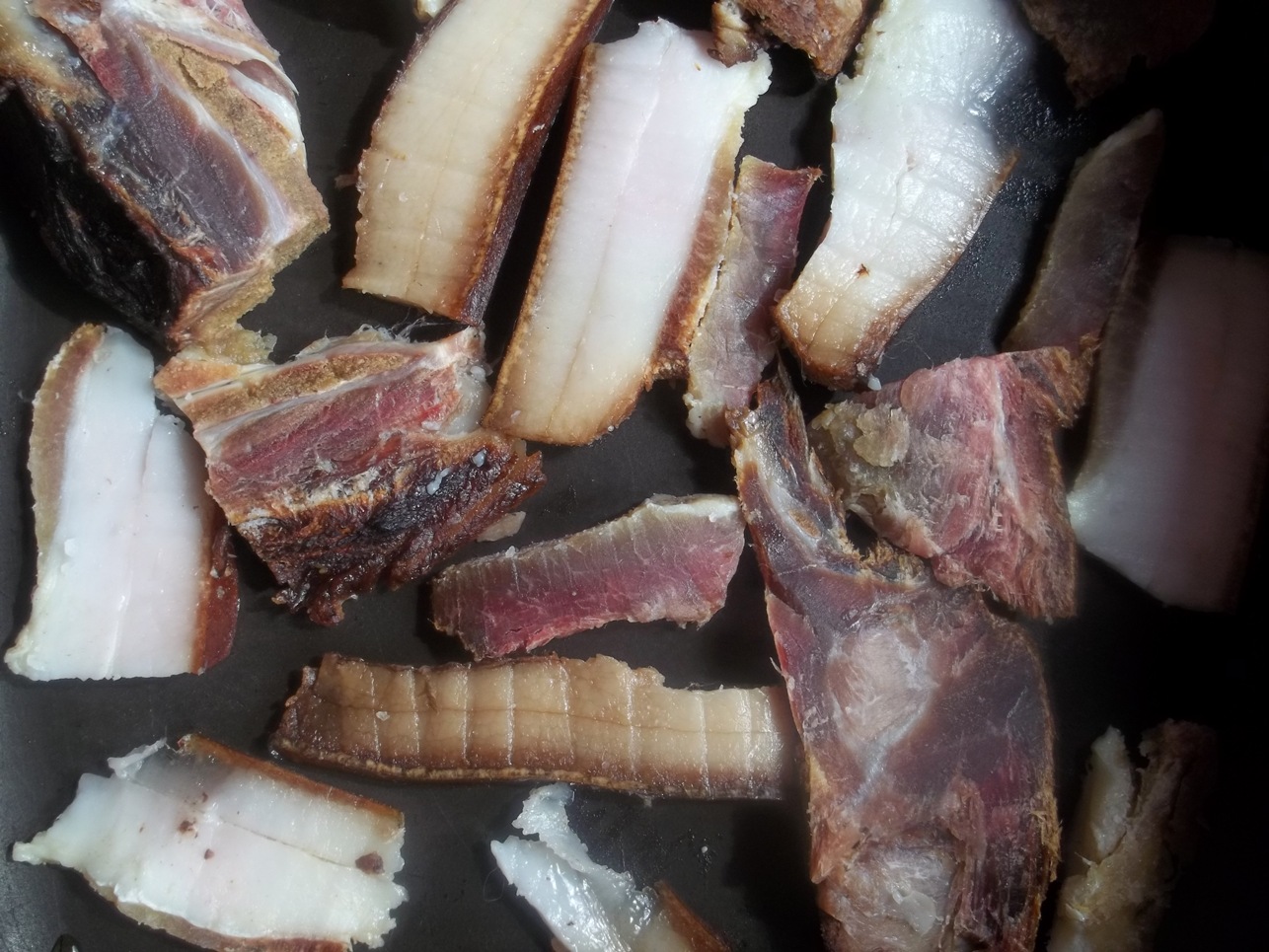 Ingredients: 400 grams of fatty bacon. We used smoked bacon from Georgia’s historical Racha region. This particular bacon is famous throughout Georgia for its taste and aroma.