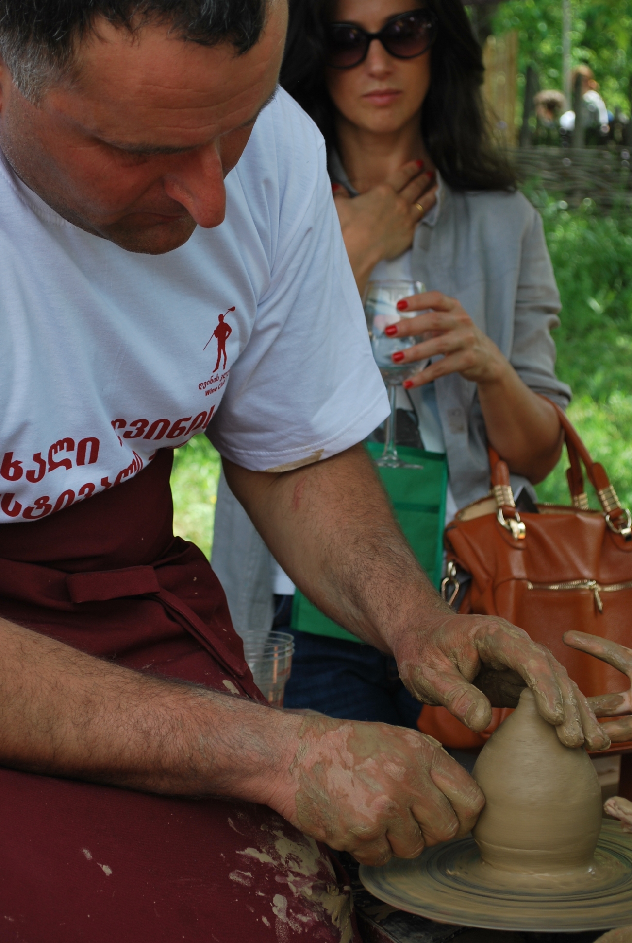 In addition to tasting Georgian wines, visitors could watch a demonstration of traditional pottery.
