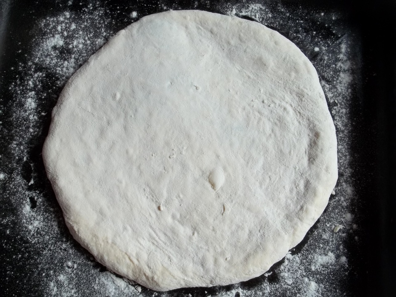 Bake on a flour dusted baking tray at 200 C until the dough becomes golden brown.