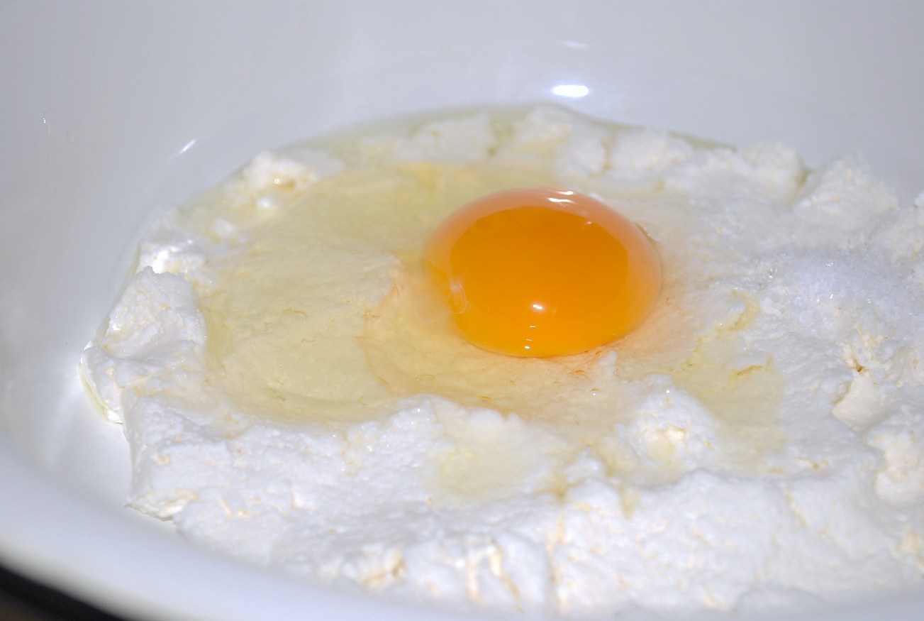 Preparation: Add 200 grams of cottage cheese and one egg to a mixing bowl. Mix thoroughly.