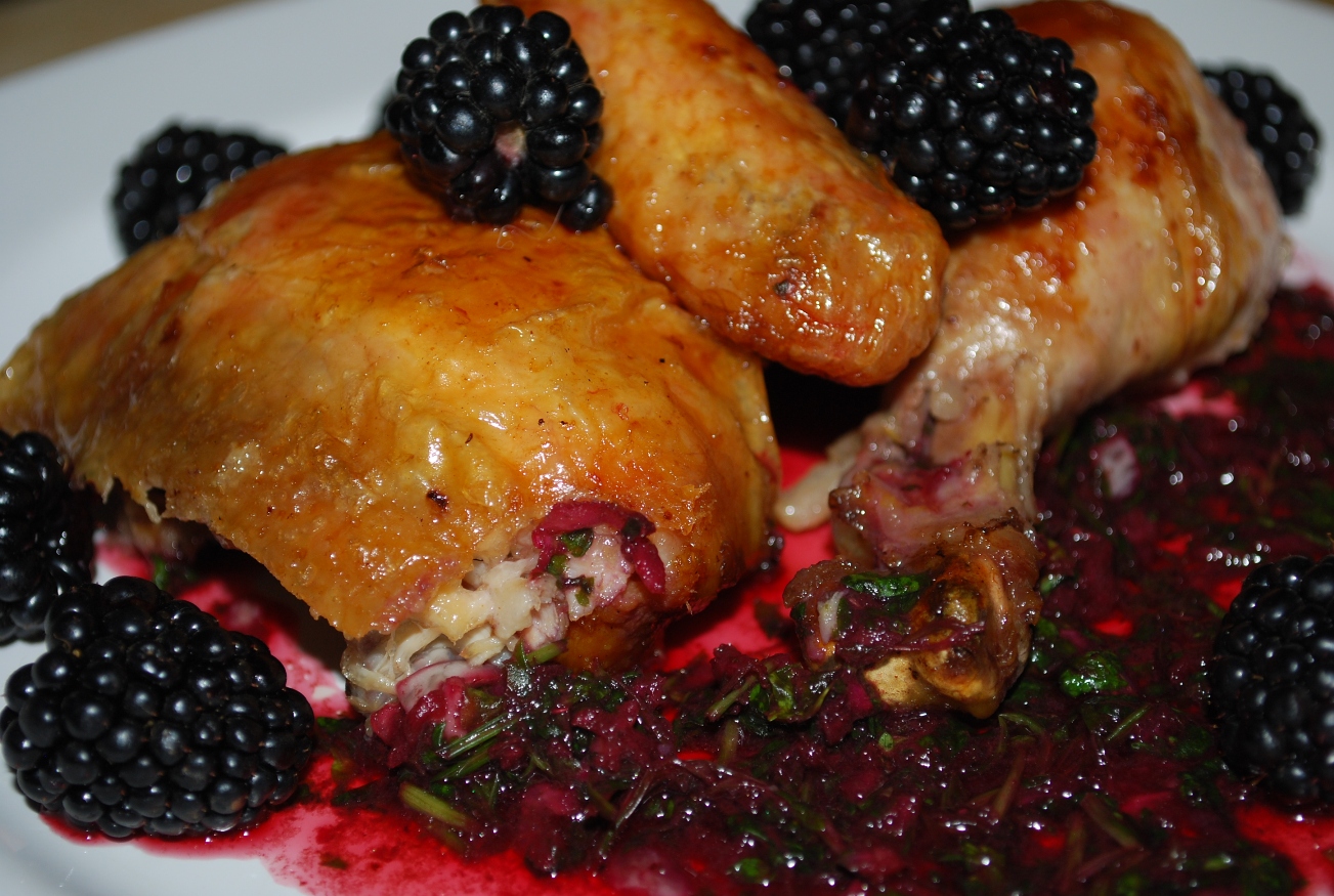 Serving: Allow the chicken to cool a little before adding the blackberry sauce.