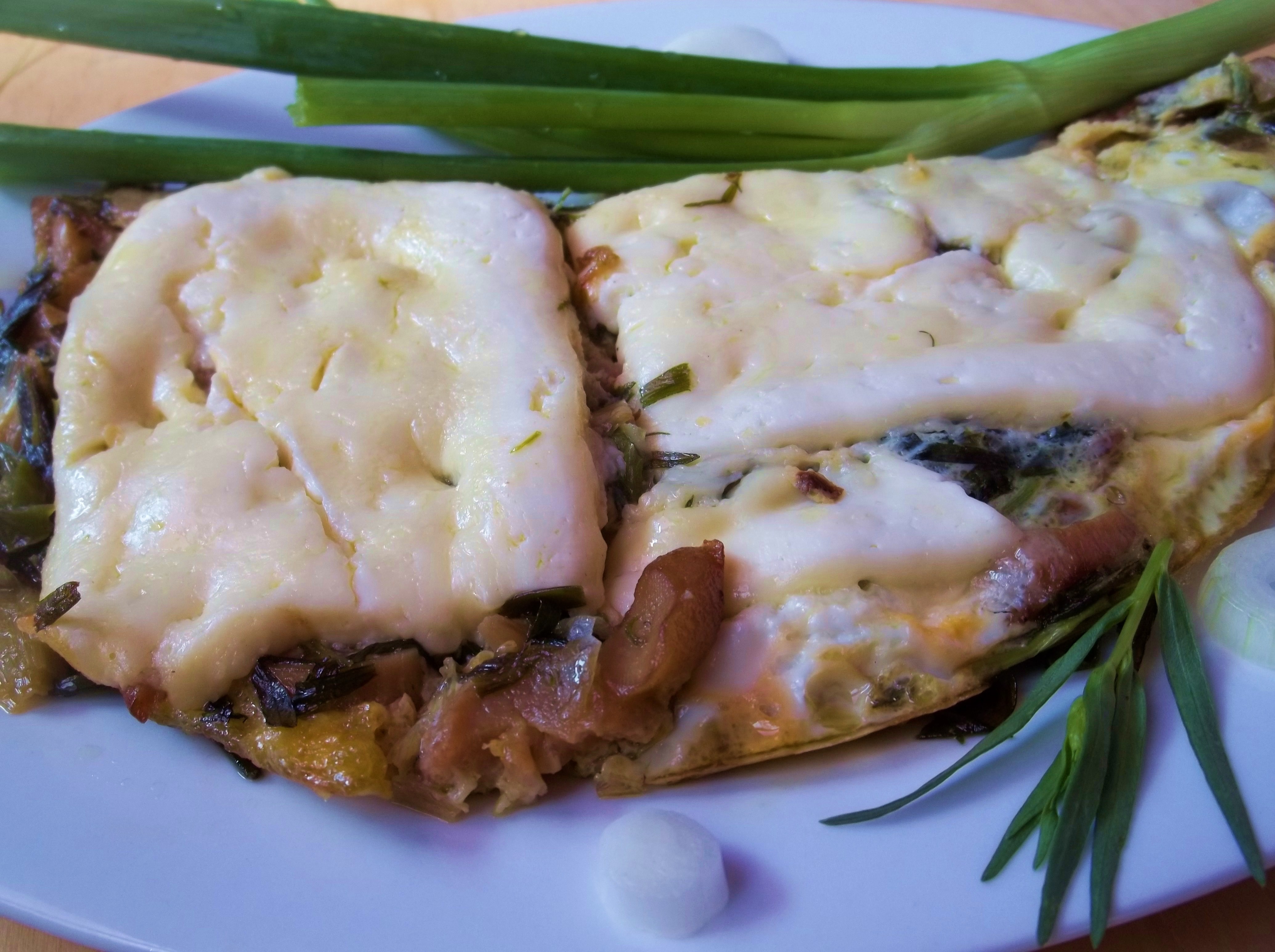 Ingredients: 400 grams of Oyster Mushrooms, 30 grams of tarragon, 20 grams of fresh green coriander, 1 clove of garlic, 3 eggs, 150 grams of new Imeretian cheese (mozzarella can be used), 2 hot green peppers, 70 grams of butter, 1 tbs of oil, and salt (amount dependent upon personal preference).