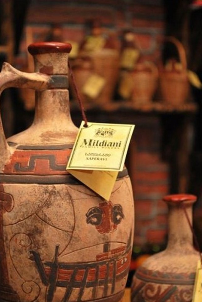 The award winning Mildiani Family Winery is located in the heart of Georgian wine-making in Tsinandali Village in the Kakheti region of Georgia. Established in 1991, the winery has vineyards comprising 100 hectares and exports around 80% of its wine. The winery initially bottled its wine in ceramic bottles and even after it began bottling in glass in 1997 it continued to produce handmade ceramic bottles for several types of its wine and chacha.
