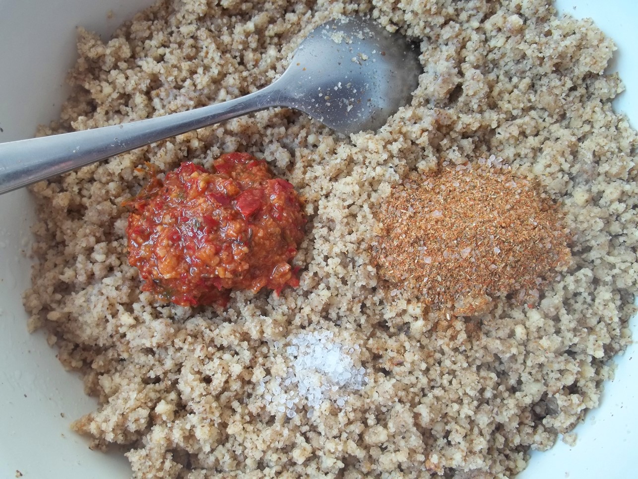 Add 1 tbs of Ajika, 1 tbs of Akhkhyla (Abkhazian spice mix), and salt. Mix thoroughly.