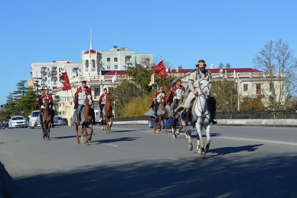 The city of Poti is located in the area that was once part of the ancient Kingdom of Colchis and during the Pazisoba festival a rider portraying King Aeëtes (mythical ruler of Colchis and owner of the Golden Fleece) rides through the city with his entourage of riders and soldiers.