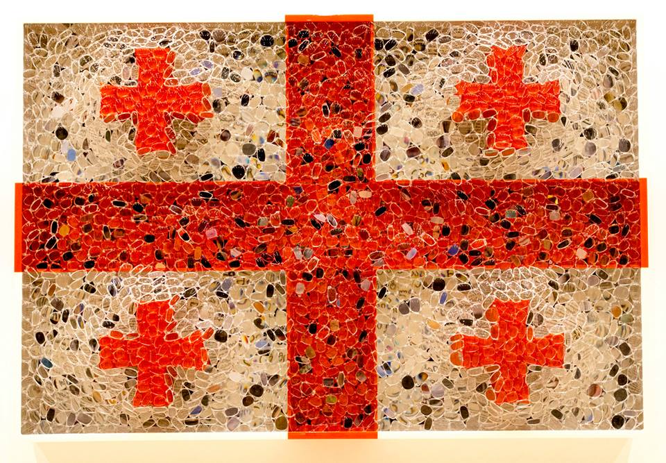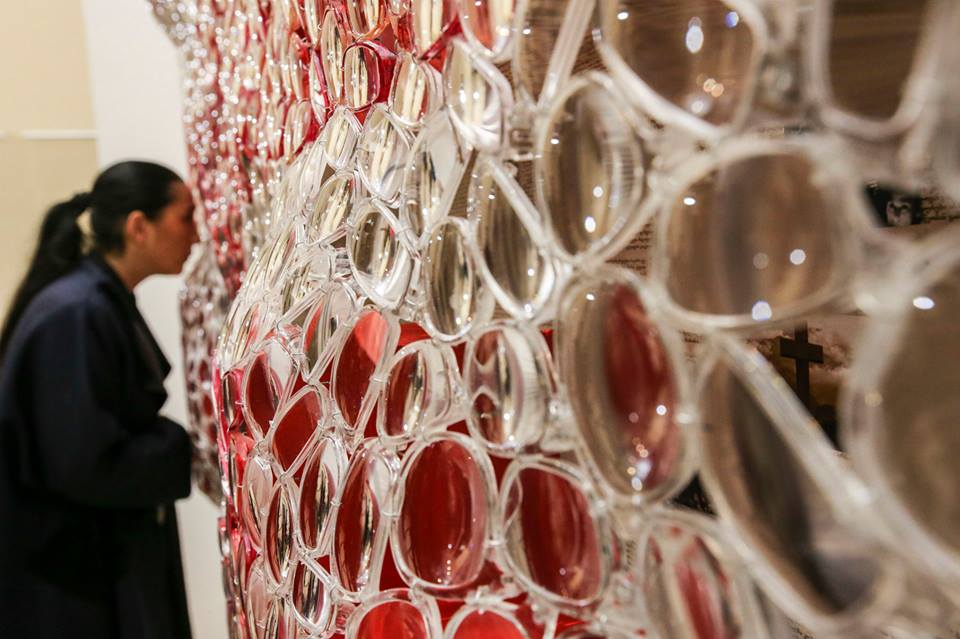 Georgian-born artist David Datuna has gifted his Georgian flag project named “Georgia – hope of millions” to the Georgian people. The artwork, in the shape and color of the Georgian flag, was created from hundreds of optical lenses of varying magnification that illuminate underlying images of Georgia’s history and political and social culture.