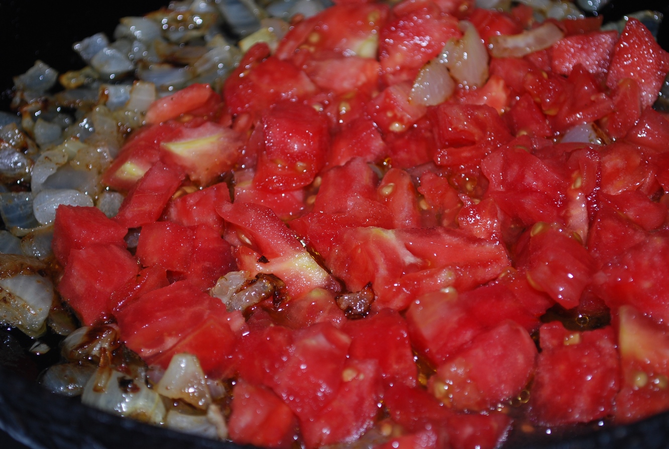 Chop the tomatoes and add to the pan. Stir and cook for 5 minutes on a medium heat.