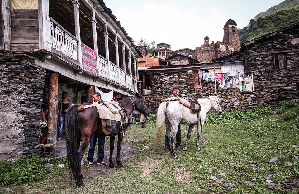 Tusheti’s vernacular architecture is based on local needs. Construction materials and traditional dwellings were largely built using dry construction methods with stone walls and roofs made from large natural slates. Timber work was often highly decorated with painted carvings and fretwork.