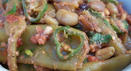 The Georgian word ‘lobio’ (Georgian: ლობიო) means ‘beans’ and there are a number of varieties of lobio dishes. In this family recipe we show how to make a spicy lobio dish made with green beans, tomatoes, peppers and walnuts. Ingredients: 700 grams of green beans, 1 large tomato, 2 onions, 1 sweet red pepper, 1 green … Continue reading