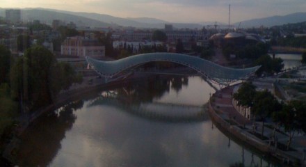 The Bridge of Peace (Georgian: მშვიდობის ხიდი) is a bow-shaped pedestrian bridge over the Mtkvari River in Tbilisi, capital of Georgia. The 150 metre (490 ft) bridge was designed by the Italian architect Michele De Lucchi and was officially opened on May 6, 2010. The wavy steel and glass canopy is fitted with thousands of LED lights that are switched on 90 … Continue reading