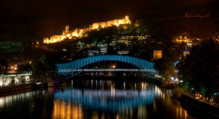The wavy steel and glass canopy of the Bridge of Peace (Georgian: მშვიდობის ხიდი) pedestrian bridge that spans the Mtkvari River in Tbilisi is fitted with thousands of LED lights that are switched on 90 minutes before sunset, illuminating the river and the buildings on both banks. The 150 meter (490 ft) bridge was designed by the Italian architect Michele De Lucchi and was … Continue reading