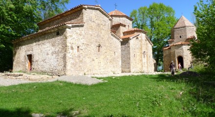 Kvetera Church (Georgian: კვეტერის ეკლესია) is located on the top of a hill within the remaining fragments of the walls of Kvetera Fortress near the town of Akhmeta, in Kakheti region. Built in the early part of the 10th century, it is a relatively small church built of local tuffa stone to a tetraconch design (four-apse cross … Continue reading