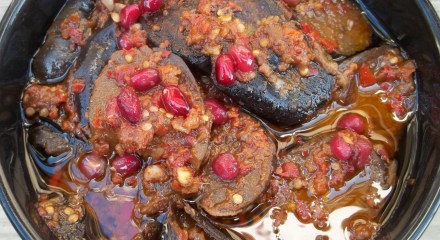 Marinated vegetables are very popular in Georgia and marinated eggplant is a particular favorite. In this family recipe we show how to marinate eggplant with sweet and hot red peppers that can be stored for many months. Ingredients: 10 kilos of eggplant, 1.5 kilos of hot red peppers, 1.5 kilos of sweet red peppers, 600 grams of … Continue reading